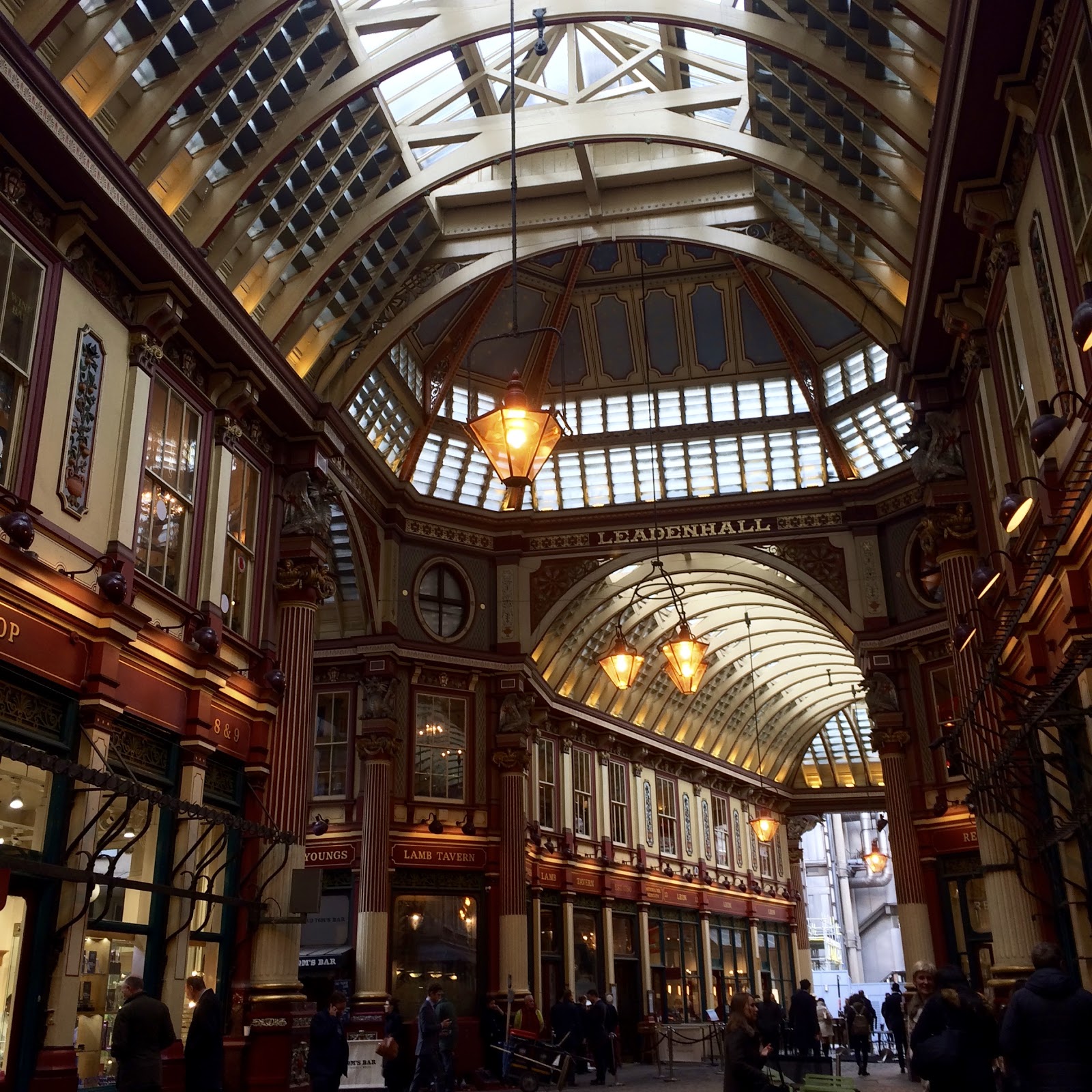 The next stop on our journey was Leadenhall Market. Though it was completely lovely, I had been envisioning more of a "market," full of stalls and vendors. Leadenhall is a Victorian covered market, is similar to Milan's Galleria Vittorio Emanuele II, or Brussels' Galleries Royales Saint Hubert. Though we didn't make it to the Warner Brother's Harry Potter Studio (there was so much else to see!), Leadenhall is a destination for any Harry Potter fan, as it was the filming location for much of Diagon Alley's outdoor shots. There is a distinctly Gryffindor atmosphere, as the two stories of shops and restaurants seem to glow red and gold.